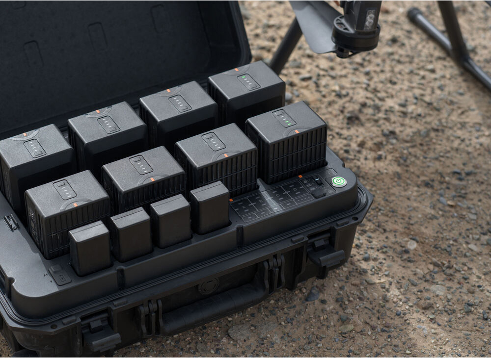 Для зручного і комфортного транспортування DJI Matrice 350 RTK виробник передбачив спеціальний багатофункціональний кейс, який по суті є зарядною станцією. Наявність ручки і коліщаток дозволять легко і просто переносити коптер, а також розгорнути його і приготувати до роботи. Или навпаки, сховати назад.