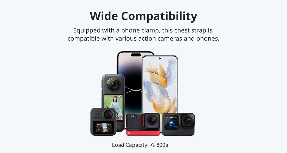 - Versatility : compatible with action cameras (GoPro, DJI, Insta360) and smartphones