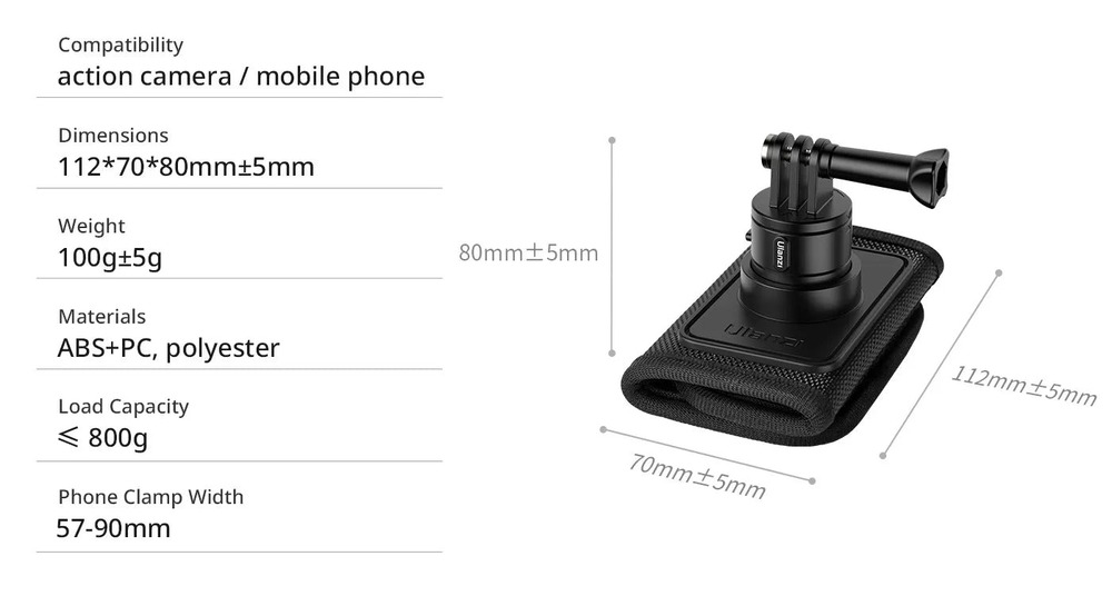 Main attributes Ulanzi CO62 quick release mount for action camera/phone on backpack harness (C064GBB1)