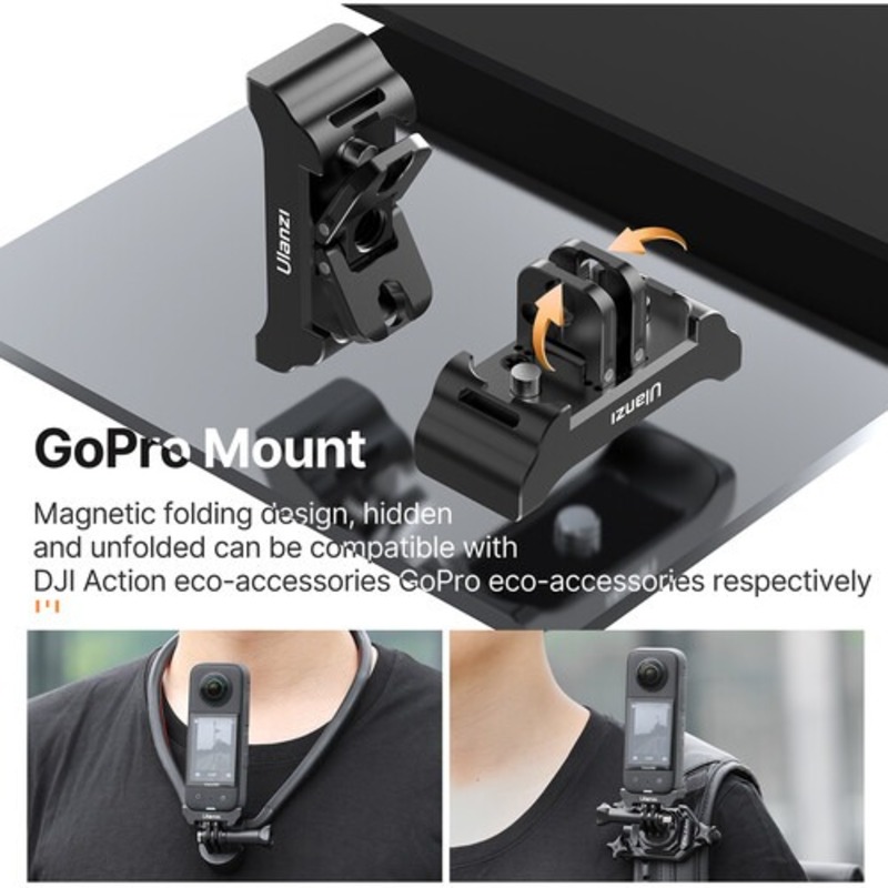 Compatible with Insta360 X2/X3, action cameras, mini cameras, as well as accessories with a 1/4" thread: tripods, monopods, chest and magnetic mounts. A universal solution for the Ulanzi ecosystem and beyond. The adapter has virtually no effect on the balance of the cameras in the frame and is suitable for mobile shooting, travel and everyday use.