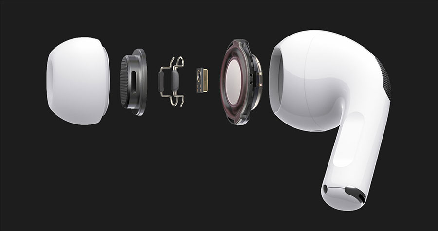 AirPods Pro очень удобны, вы можете носить их весь день и не почувствовать никакого дискомфорта. В зависимости от типа ушной раковины, вы можете выбрать силиконовые насадки: большие, средние и маленькие. Данные силиконовые насадки лучше фиксируют наушник в ухе и улучшают шумоподавление. Специальные вентиляционные отверстия обеспечивают комфорт при использовании.