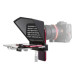 Телесуфлер Desview T2 рассчитан на смартфоны и планшеты с диагональю экрана до 7,9" (18,1 см). В качестве источника текста используется смартфон или планшет, закрепляемый под зеркалом суфлера. На него устанавливается приложение, в котором движение текста можно управлять с пульта. (также поставляется в комплекте). Он легко крепится на объектив камеры за несколько секунд.
