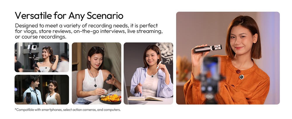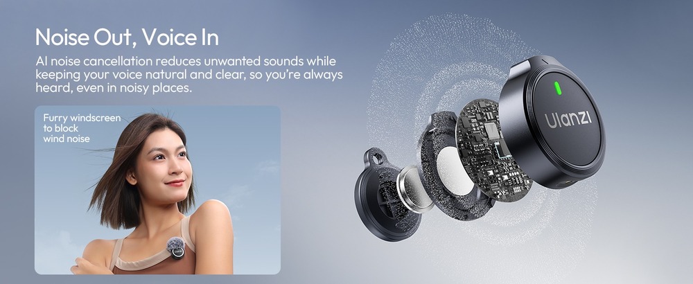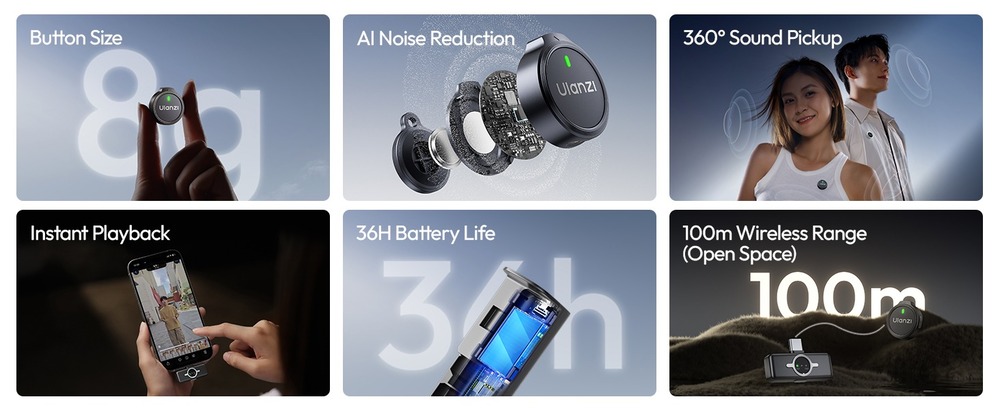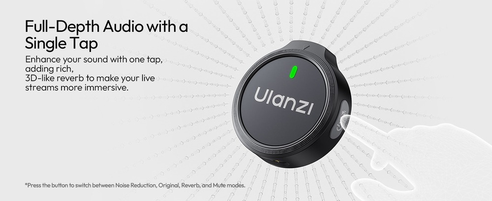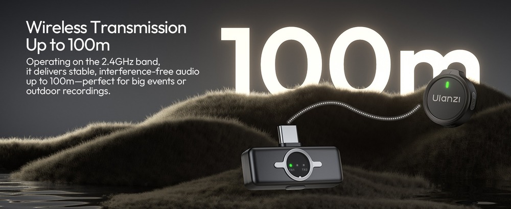 Ulanzi A21 — это ультракомпактная двухканальная беспроводная система, обеспечивающая запись звука профессионального уровня 32kHz / 24 Bit. Система работает на частоте 2.4 GHz, гарантируя стабильную передачу сигнала на расстоянии до 100 метров. Микрофоны оснащены интеллектуальным AI-шумоподавлением и поддерживают несколько режимов работы, включая эффект объемной реверберации.