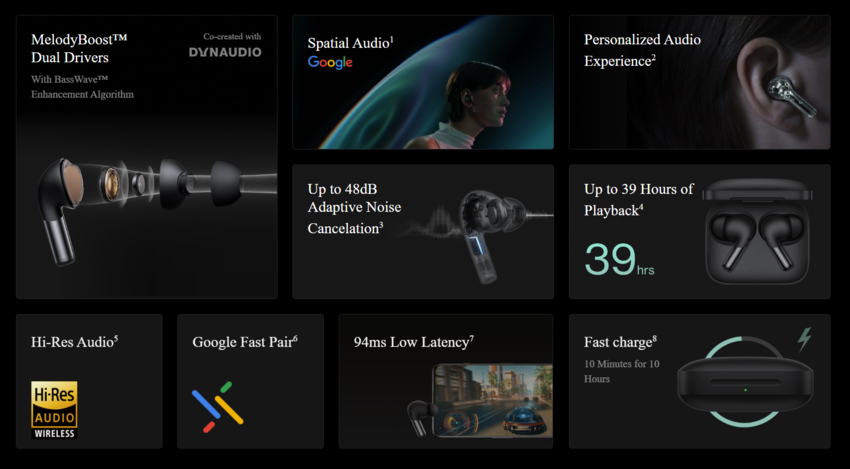 - Функция «Здоровье шеи», OnePlus Audio ID 2.0, Zen Mode Air