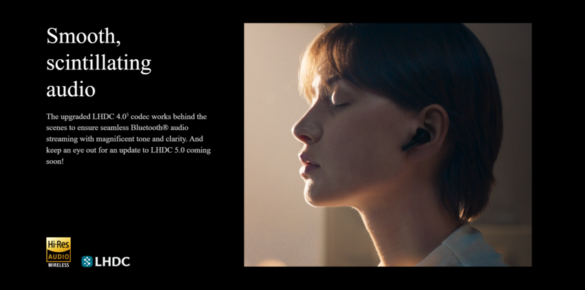 Наушники оснащены двойной драйверной системой MelodyBoost™, разработанной совместно с Dynaudio, обеспечивающей глубокие басы и кристально чистые высокие частоты. Поддержка кодека LHDC 5.0 гарантирует передачу звука высоким разрешением (Hi-Res Audio Wireless). Интеллектуальное шумоподавление адаптируется к окружающей среде, а пространственное аудио от Google отслеживает положение головы для создания объемной сцены.