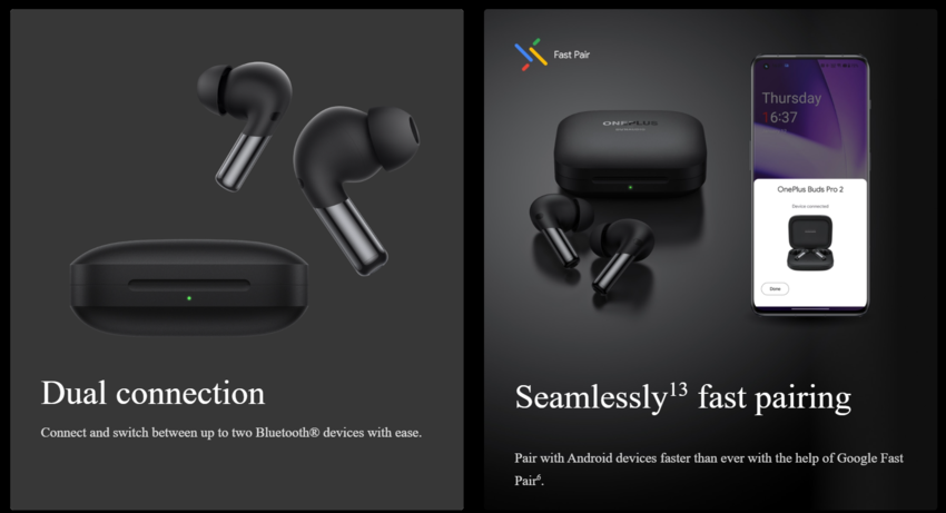 - Функции подключения: Google Fast Pair, Двойное соединение (Multipoint)