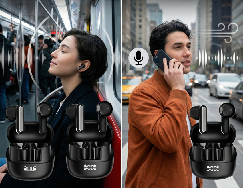 Система ANC активно блокирует низкочастотные шумы города или офиса, а технология ENC гарантирует, что ваш собеседник будет слышать только ваш голос без посторонних звуков ветра или машин.