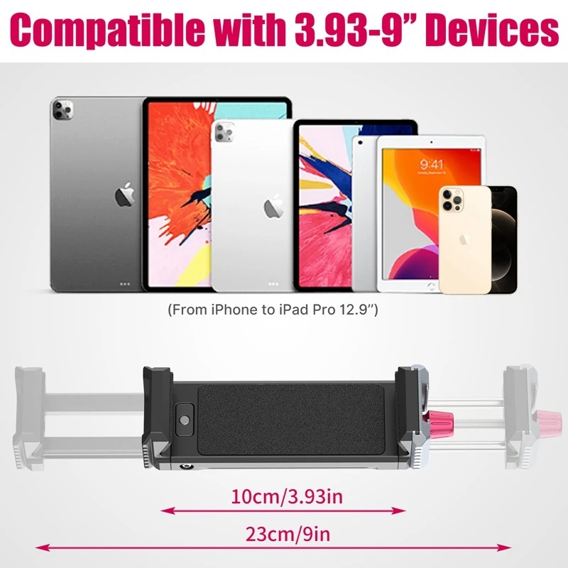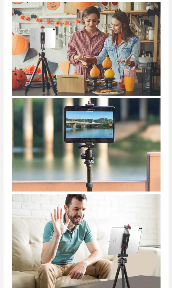 Ulanzi Vijim U-Pad III — это универсальный держатель, созданный для работы как со смартфонами, так и с планшетами. Он поддерживает устройства диагональю до 12,9 дюймов, поэтому одинаково хорошо подходит для iPhone, iPad Pro и других крупных гаджетов.