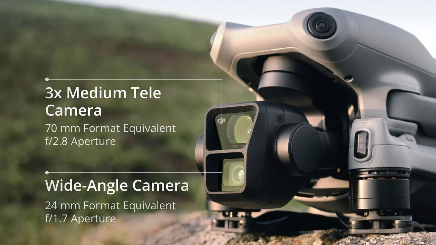 Air 3 представляет собой переход на новый уровень в серии Air, оборудованный первой системой с двумя основными камерами. В элегантном и компактном корпусе размещены две камеры, каждая из которых имеет сенсор размером 1/1,3 дюйма CMOS.