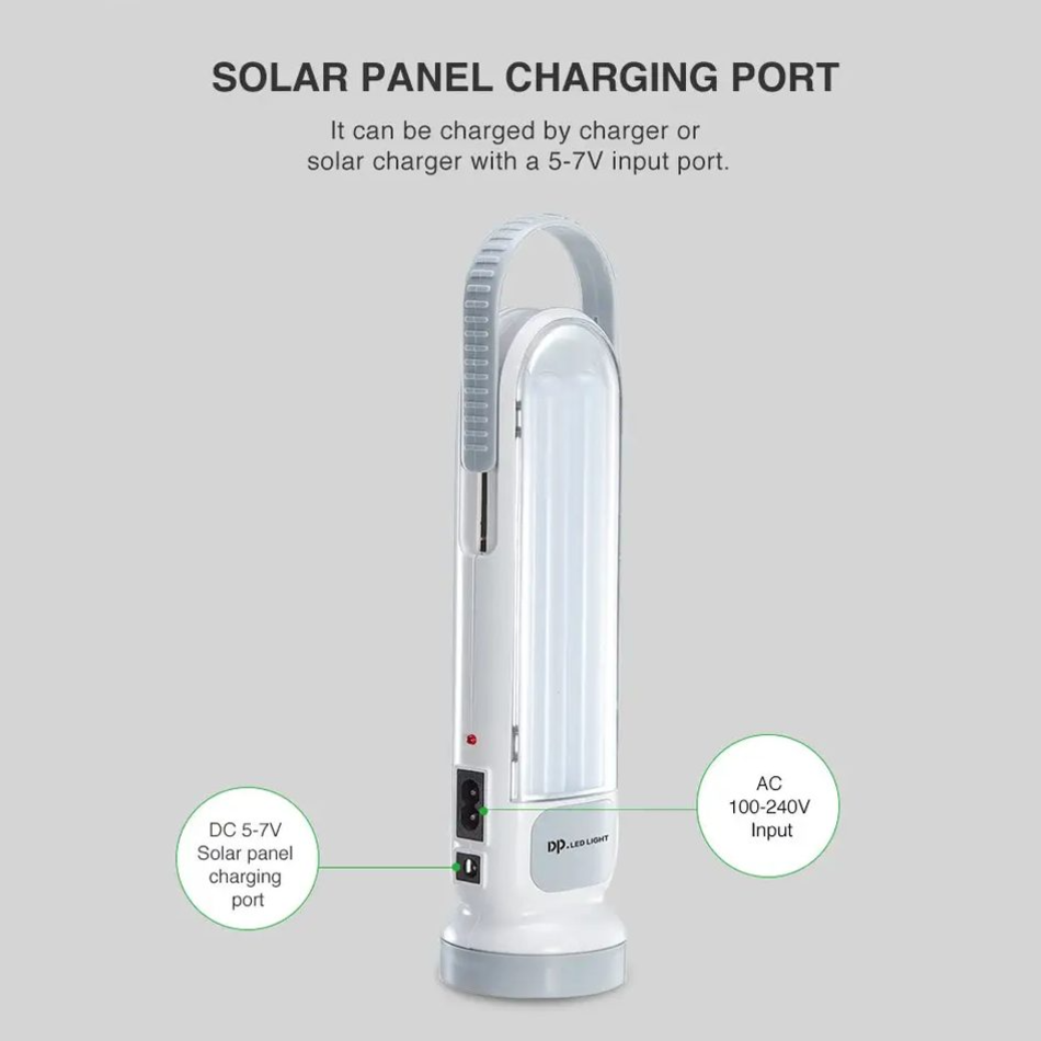 Портативный фонарь DP-7102 — это универсальный источник света для дома, улицы и работы в сложных условиях. Оснащён мощными LED-лампами, работает как в режиме ручного фонаря, так и в режиме аварийного освещения. Может заряжаться как от сети 220 V, так и от солнечной панели. Удобная ручка, несколько режимов яркости и длительное время работы делают его надежным помощником в любой ситуации.