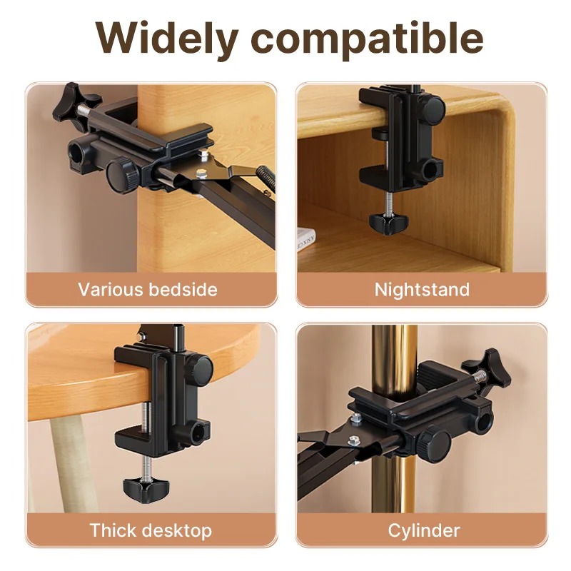 Штатив можно закрепить на столешнице, прикроватной тумбе, цилиндрической опоре или другой поверхности толщиной до 40 мм.