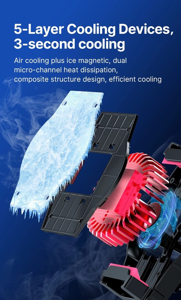 Встроенный бесщёточный вентилятор с уровнем шума ниже 27 дБ эффективно отводит тепло от корпуса смартфона. Это предотвращает перегрев и троттлинг при стриминге, записи видео, видеозвонках и мобильном гейминге. Производительность остаётся стабильной даже при длительной нагрузке.