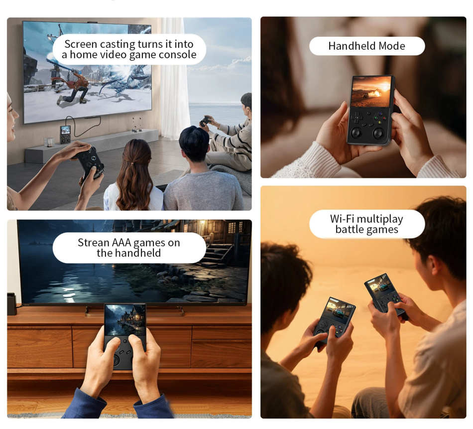 У приставки отличный яркий экран, стабильный Wi-Fi, виброотклик, два полноценных стика и простой понятный интерфейс. Всё это делает RG35XX Pro комфортной, быстрой и универсальной консолью для портативной игры дома, в дороге или в путешествиях.