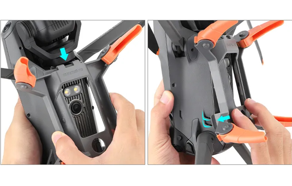Шасси эффективно увеличивает расстояние между дроном и землей на 42мм, поднимая дрон и подвес, чтобы избежать ударов и обеспечить безопасность.