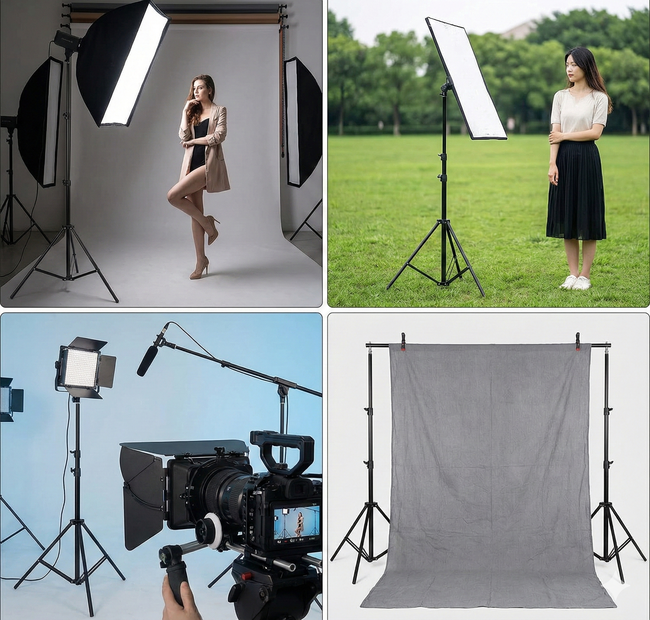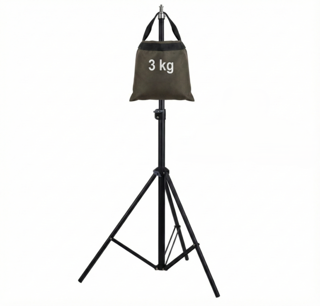 Штатив рассчитан на нагрузку до 3 кг. Усиленные металлические ножки и прочная конструкция обеспечивают стабильность даже при установке тяжелых источников света или дополнительного оборудования.