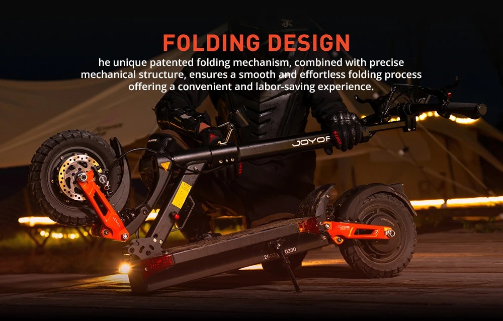 JOYOR T10 — это выбор тех, кто ищет максимальную мощность и выносливость в компактном корпусе. Система полного привода и гидравлические тормоза ставят его на уровень выше обычных электросамокатов, предлагая драйв и безопасность в любых условиях. Защищенный порт зарядки и усиленная рама гарантируют долгий срок службы даже при интенсивной эксплуатации.