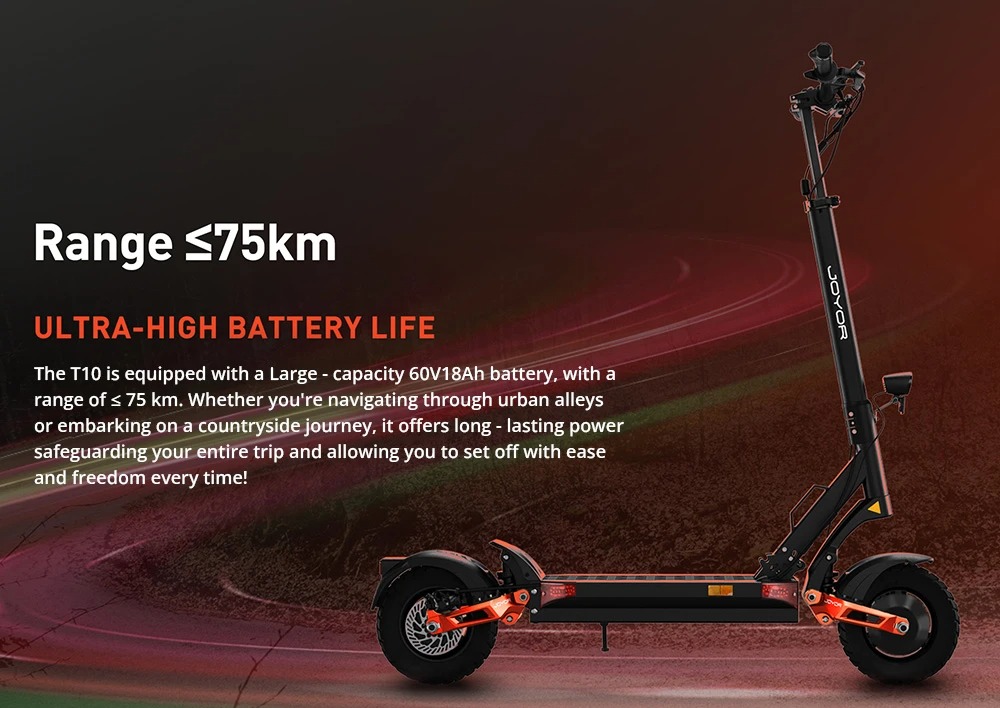 Вопросы и ответы (FAQ) Внедорожный электросамокат JOYOR T10 (1000W x 2, 60V 18Ah, до 75 км)
