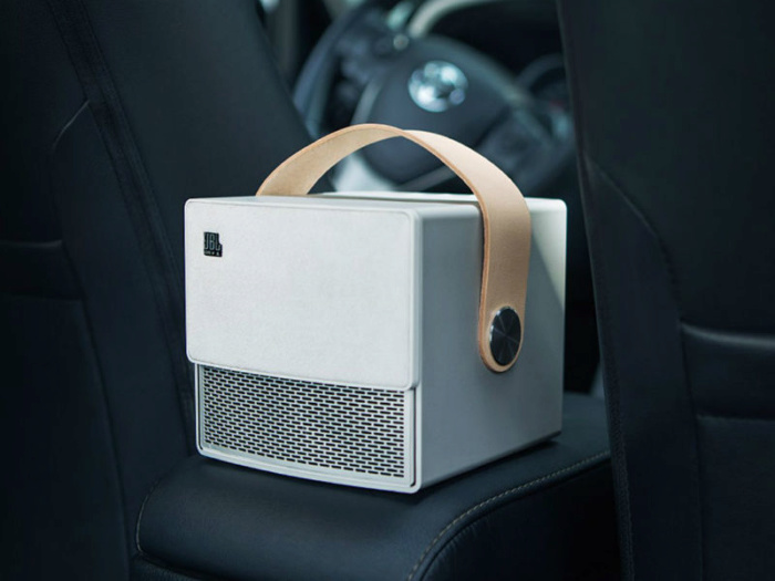 Гаджет изготовлен в стильном прямоугольном алюминиевом корпусе белого цвета. Также в нашем онлайн магазине вы можете купить черный проектор XGIMI CC AURORA DARK KNIGHT. Спереди расположились линзы для проецирования изображения и специальный световой индикатор, который показывает статус работы. Для защиты вы можете закрыть их специальной крышкой, на которой изображен логотип компании JBL. На тыльной стороне производитель вынес все порты: USB3.0, USB2.0, HDMI. миниджек 3.5 мм и порт для зарядки.
