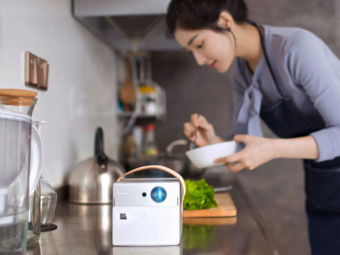 Устройство может порадовать владельца компактными размерами (13,8 х 13,5 х 11,9 см) и легким весом в 1.5 кг. Его можно брать с собой в офисы, на поездки за город, к друзьям для просмотра кино. Для удобства предусмотренная прочная тканевая ручка. В комплекте с проектором идёт пульт управления, если вам проще использовать личный смартфон, производитель установил во внутрь мощное железо с 1гб ОЗУ и 16 гб собственной памяти, а также ОС Android с фирменной оболочкой "GUMI". Чтобы вам было удобнее, вы можете загрузить на свой смартфон или планшет специальное приложение «XGIMI Assistant» (iOS и Android). С его помощью вы можете использовать телефон, как пульт ДУ, менять настройки, резкость изображения, выбирать режимы, либо же загрузить с памяти фото, видео и аудио-контент.