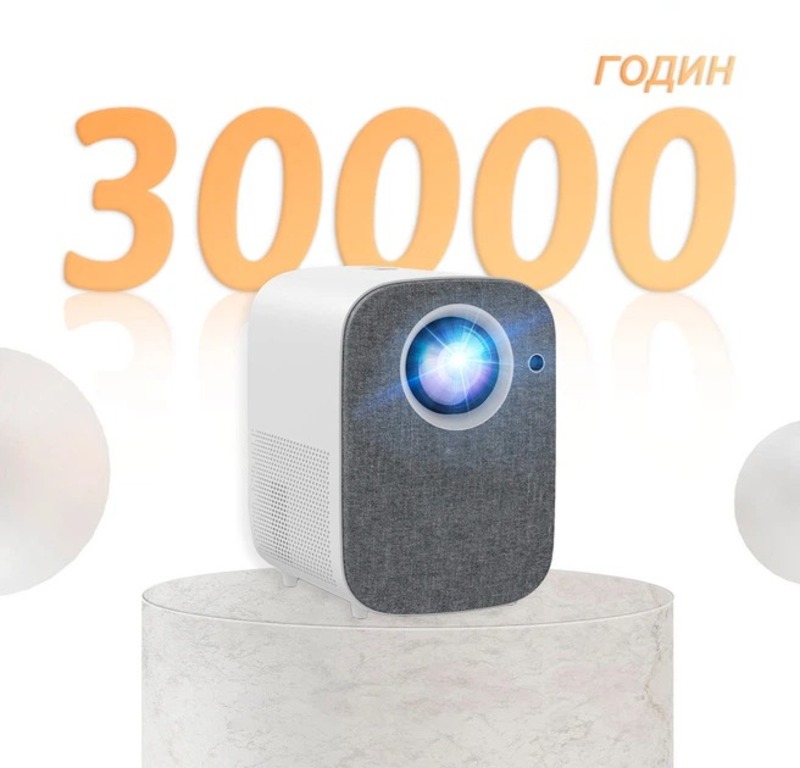 Ресурс LED-лампы составляет до 30 000 часов, что гарантирует годы работы без замены источника света. Проектор поддерживает различные режимы установки: передний, задний и потолочный (изображение можно перевернуть в настройках).