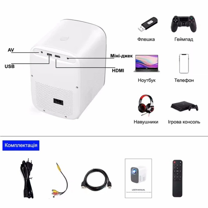 Everycom L8 (Wi-Fi Version) — это современный мультимедийный LED-проектор с нативным разрешением Full HD, который выводит домашние развлечения на новый уровень. Главной особенностью этой модели является встроенная поддержка технологии «wireless sync display» и автоматическая фокусировка, что редко встречается в этом ценовом сегменте. Компактный и стильный, он идеально впишется в любой интерьер, превращая комнату в кинотеатр.