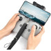 Длина ремешка составляет 52 см, а ширина – 2,5 см. Пользователь может регулировать его по размеру, подобрав оптимальный вариант. В процессе эксплуатации не блокирует экран смартфона и не мешает работе пульта. Оснащен специальным крепежом, с помощью которого надежно фиксируется на пульте.