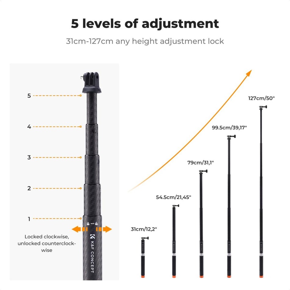 Карбоновый телескопический монопод K&F Concept (127 см)