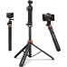 Этот многофункциональный аксессуар объединяет в себе сверхдлинную селфи-палку и устойчивый напольный штатив. Модель выделяется внушительной высотой подъема до 175 см и наличием съемного Bluetooth-пульта, что делает её идеальным инструментом для самостоятельной съемки контента на смартфон или экшн-камеру.