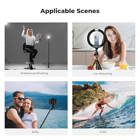 Штатив оборудован поворотной головкой, позволяющей изменять угол наклона и ориентацию устройства (горизонтально или вертикально). Это идеальное решение для портретной съемки, стримов, видеоконференций и контента для TikTok или Instagram Reels. Кроме того, Bluetooth-пульт позволяет дистанционно управлять затвором камеры смартфона, что делает создание фото и видео еще более удобным.