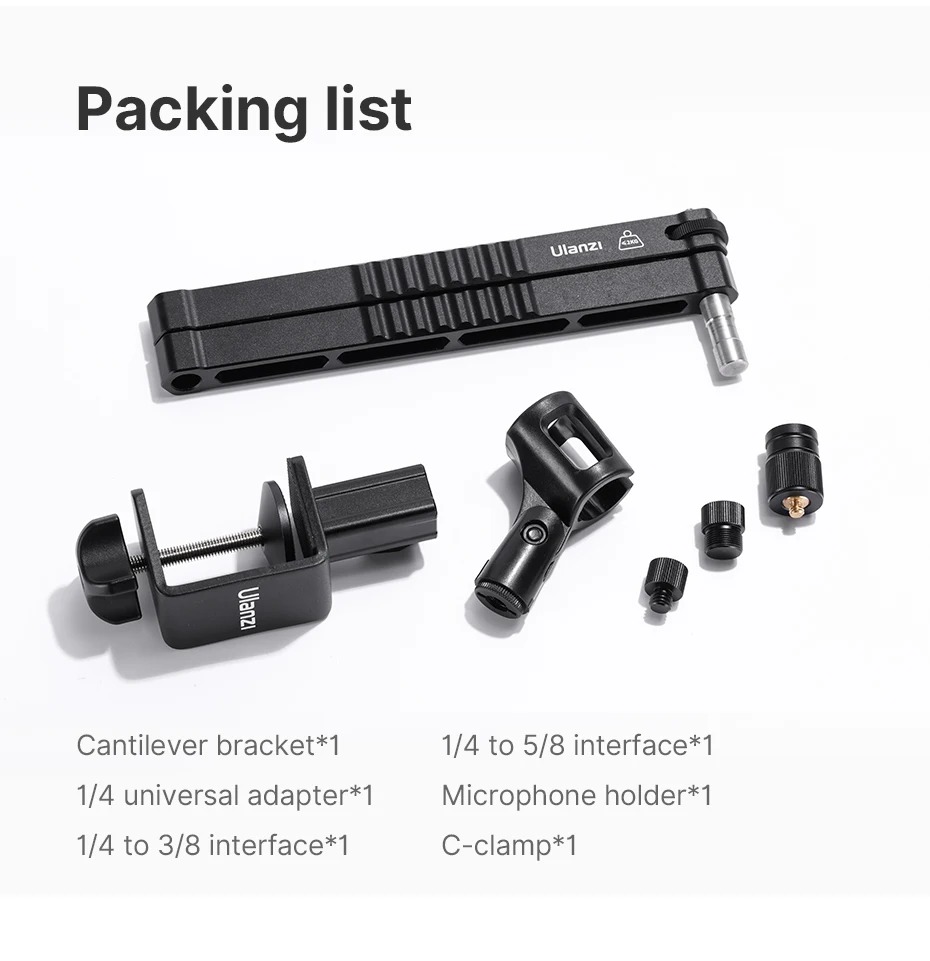 Благодаря набору комплектных переходников (1/4", 3/8", 5/8"), стойка совместима практически с любым звуковым оборудованием, камерами, держателями для телефонов и LED-светом.