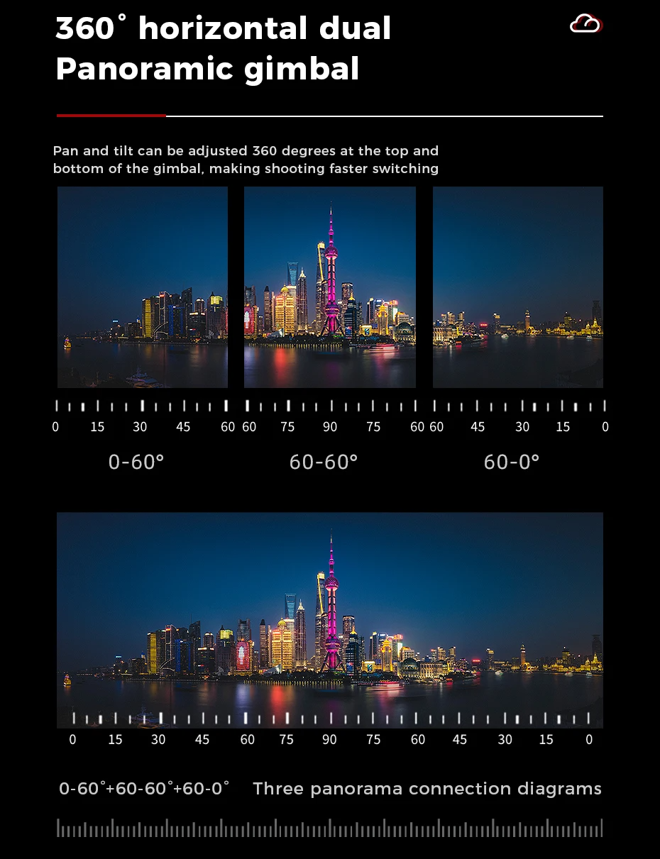 Возможность вращения на 360° как сверху, так и снизу головки, что дает полный контроль и удобство при панорамной съемке.