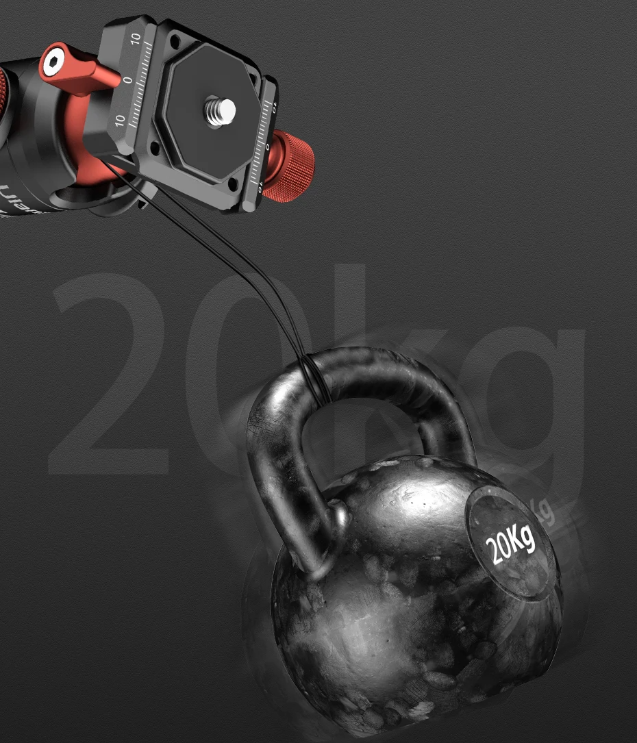 Максимальная нагрузка до 20 кг позволяет использовать головку с любыми камерами, включая тяжелые профессиональные зеркалки.