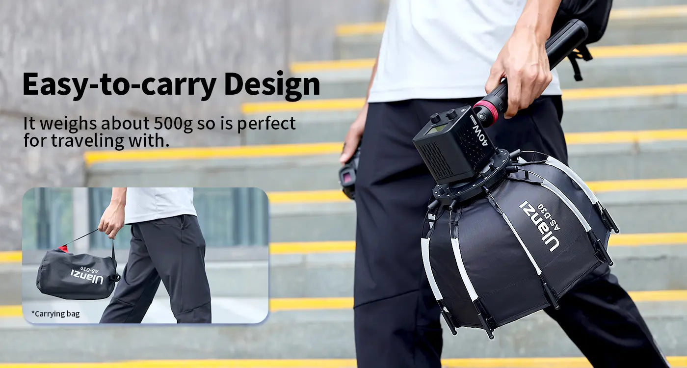 Софтбокс Ulanzi AS-D30 — это удобное и профессиональное решение для создания мягкого освещения. Он сочетает компактные размеры, легкий вес и высокую функциональность. Универсальное крепление Mini Bowens делает его совместимым с множеством источников света, а продуманная конструкция упрощает работу как в студии, так и в полевых условиях.