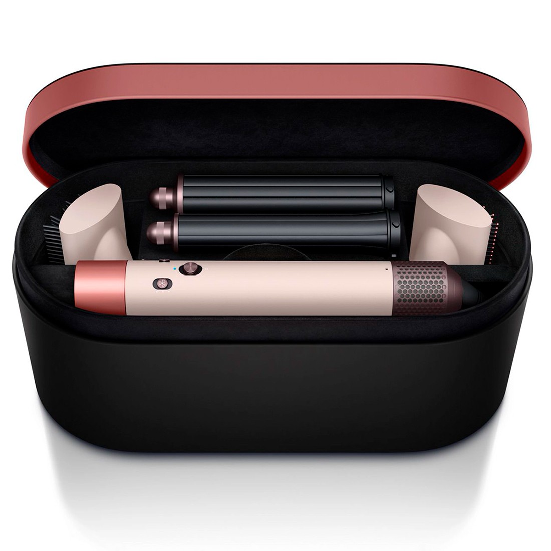 Стильный цветовой дизайн в оттенках розового и розового золота делает этот стайлер не только мощным инструментом для укладки, но и изящным дополнением к вашему интерьеру. Легкий и эргономичный, Dyson Airwrap обеспечивает удобное использование и легкость управления, что делает процесс укладки простым и приятным.