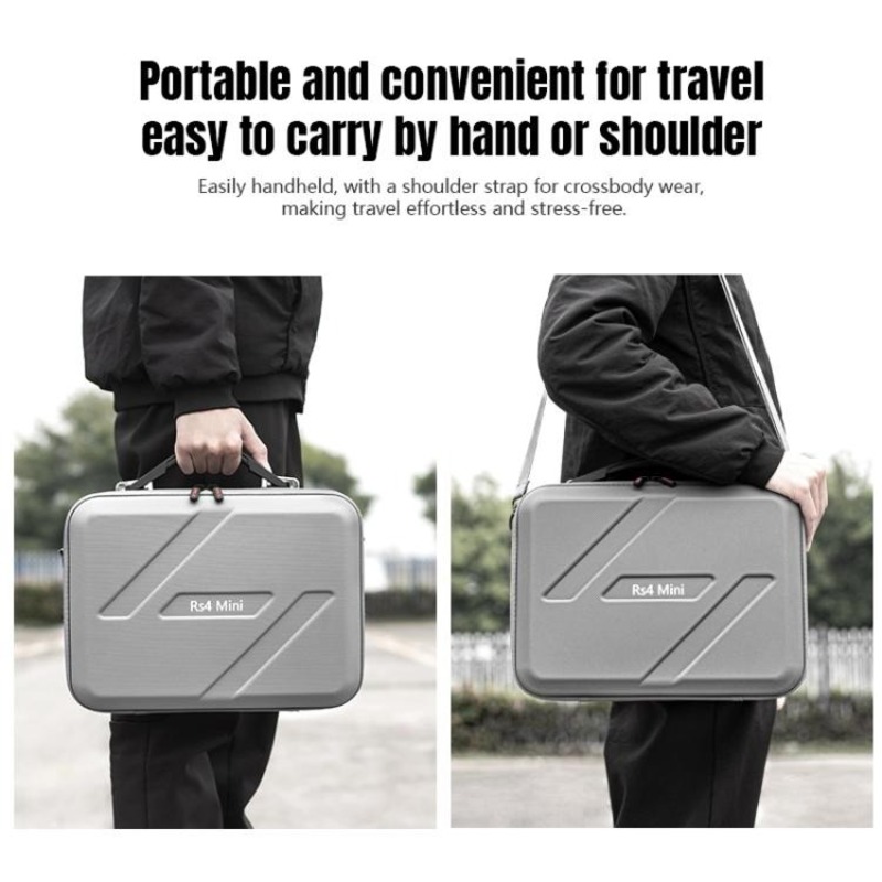 Этот стильный и прочный кейс разработан специально для электронного стабилизатора DJI RS 4 Mini. Он выполнен в универсальном сером цвете и имеет жёсткую формованную конструкцию, которая надёжно защищает оборудование от ударов, сдавливания и внешних воздействий во время транспортировки и хранения.
