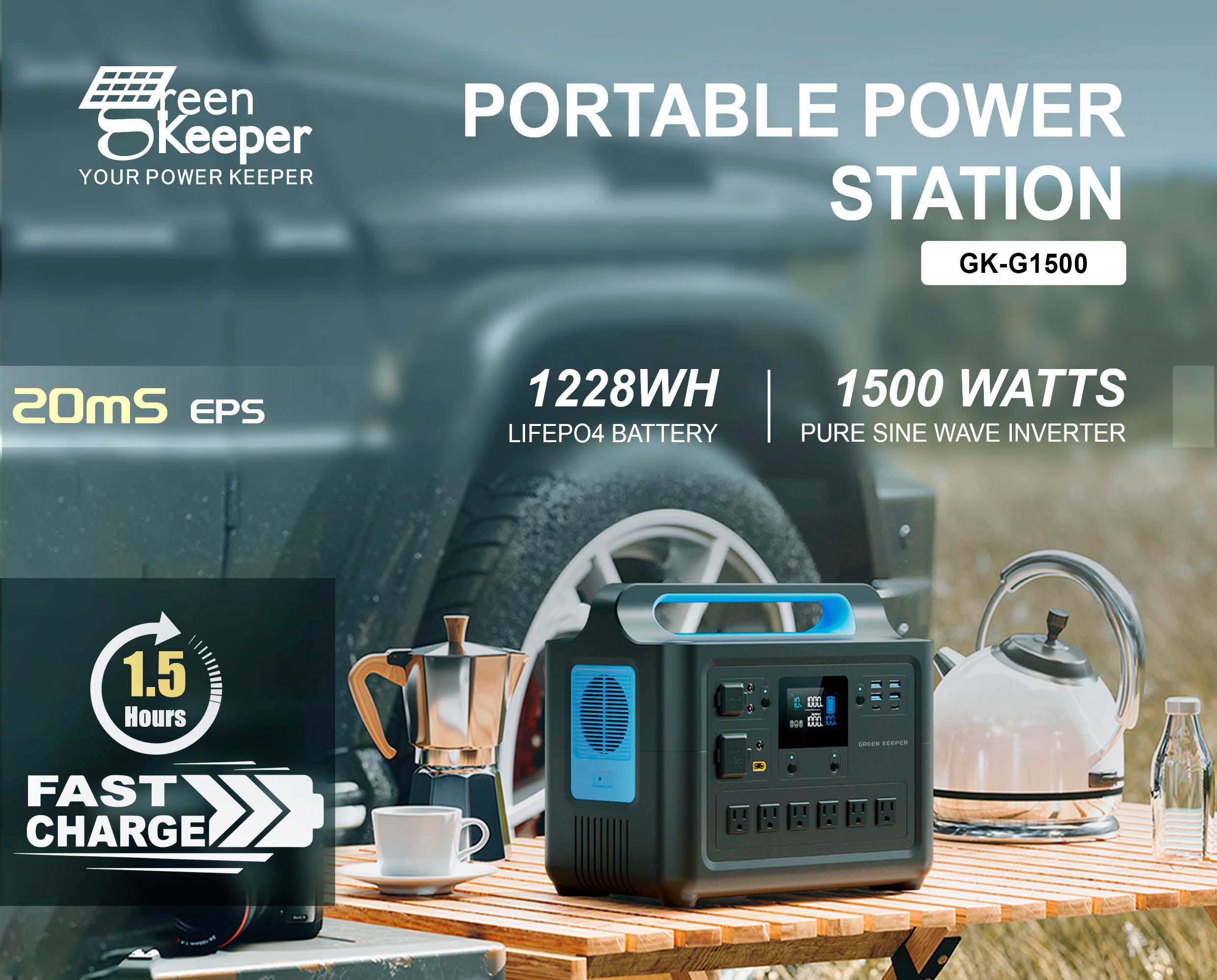 Ищете надежное и мощное решение для автономного питания ваших устройств? Зарядная станция Green Keeper GK-G1500 создана специально для вас! Независимо от того, отправляетесь ли вы в длительное путешествие, планируете ли кемпинг, или просто хотите быть уверены в наличии резервного источника энергии дома, эта станция станет вашим незаменимым помощником. С мощностью 1500 Вт и емкостью аккумулятора 1228 Вт/ч, она готова обеспечить стабильное питание для самых разных устройств, от смартфонов и ноутбуков до бытовой техники. Green Keeper GK-G1500 – это сочетание производительности, надежности и экологичности в одном устройстве.
