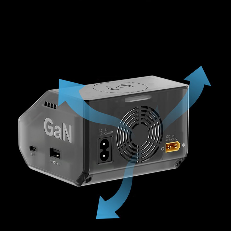 GaN-технология снижает тепловыделение, поэтому устройство остаётся тихим даже под нагрузкой. Эффективная система охлаждения поддерживает стабильную работу и не допускает перегрева при быстрой зарядке.