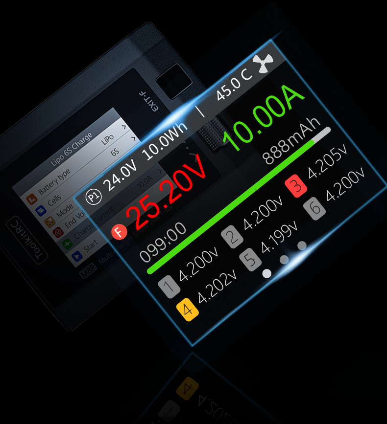 ToolkitRC M8P оснащен эффективной системой защиты от перегрузки, реагирующей менее чем за 5 миллисекунд. Эта быстрая реакция предотвращает перегрев, короткое замыкание и перезарядку аккумуляторов, значительно повышая безопасность использования. Такая система защиты не только удлиняет срок службы аккумуляторов, но и обеспечивает надежность самого зарядного устройства, предохраняя его от повреждений в случае нестабильных условий питания или ошибок в процессе зарядки.